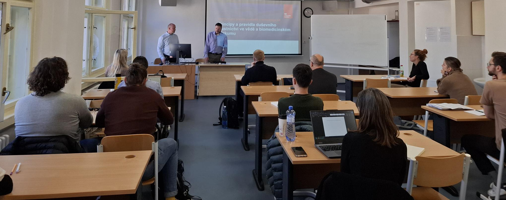 Aktuálně máme za sebou přednášku pro studenty doktorského studia na Lékařské fakultě UK v Hradci Králové na téma „Principy a pravidla duševního vlastnictví ve vědě a biomedicínském výzkumu“, kterou vedl ředitel CPPT UK Mgr. Ivo Svejkovský, MBA, Ph.D. spolu s patentovým specialistou Ing. Nikolou Minksem. Studentům jsme přiblížili nejen výhody, ale i úskalí spojená s ochranou a komercializací výsledků vědeckého výzkumu.